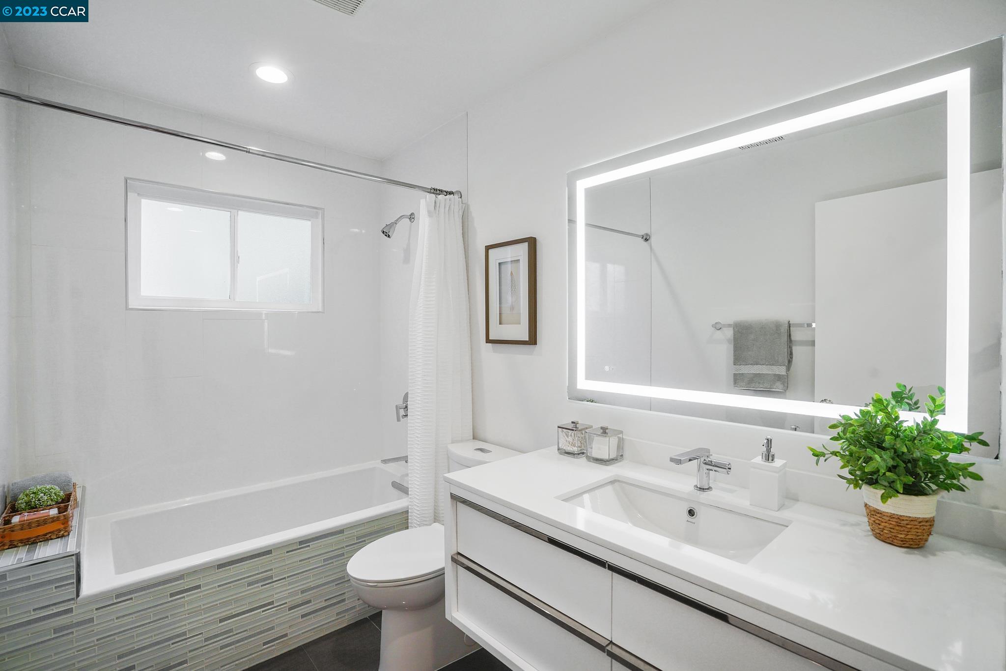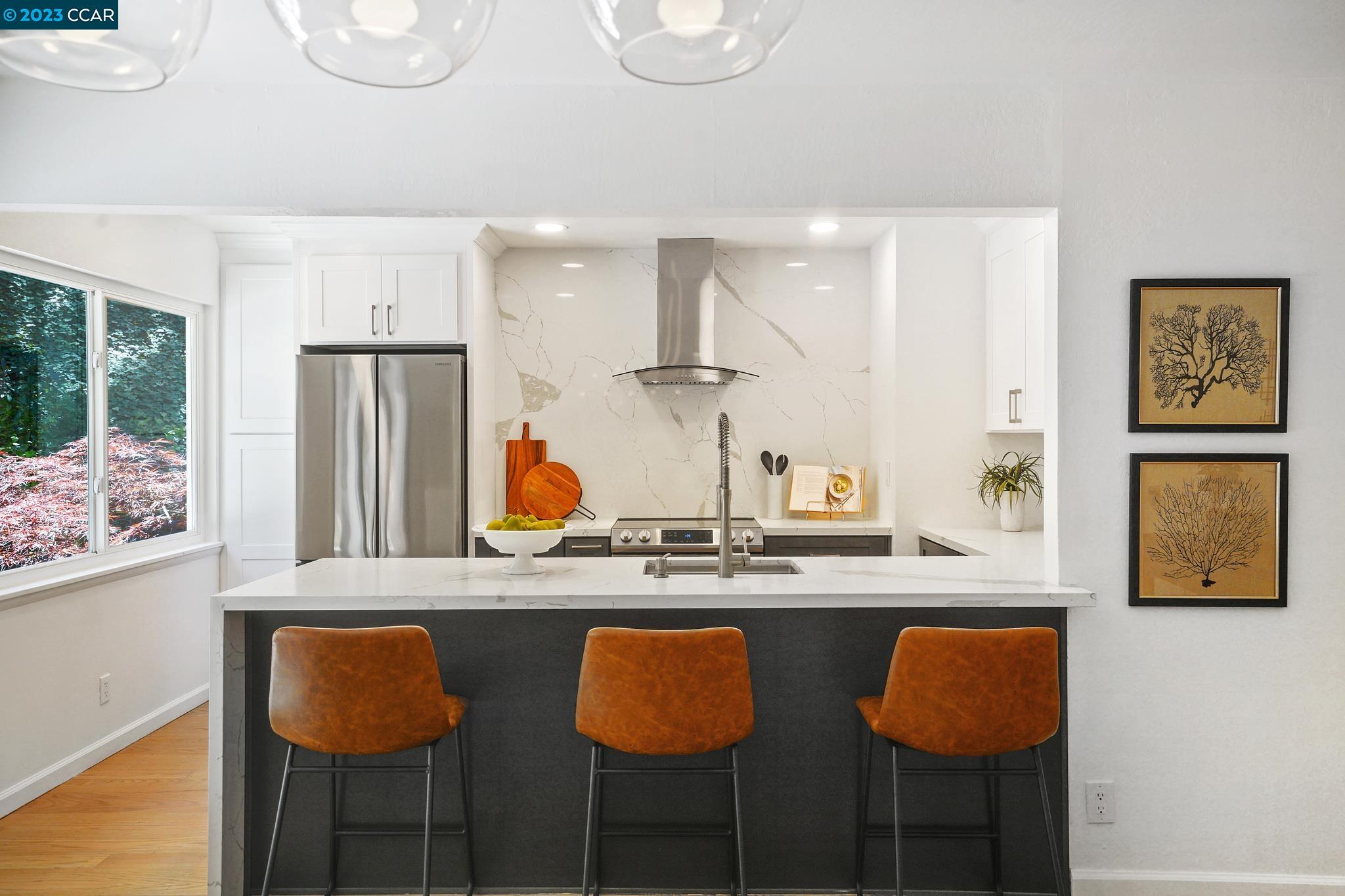 This immaculate single-story home with stunning views is a private oasis set above a cul-de-sac in Orinda's Glorietta neighborhood. Three bedrooms, 2 remodeled baths, and a remodeled kitchen with 1411 sq ft of living space on a .63-acre lot. Gorgeous garden with mature landscaping, flourishing maple trees, a flat, grassy yard, and stone patios. Soak in the amazing valley views and idyllic setting from the hot tub perched on the upper patio. This adorable home will tug at your heartstrings with its perfect front porch, awesome yard, and welcoming interior. You are greeted by a great room with a two-sided fireplace separating the living and dining rooms with access to the inviting backyard and a newly remodeled kitchen featuring a quartz waterfall countertop with breakfast bar, new stainless-steel appliances, and sleek quartz wall above the range. The primary bath has dramatic tilework, a walk-in shower with a linear drain, and a sliding barn door. There are two additional bedrooms, all with great views, and a sparkling hall bath with a floating vanity and serene tilework. Refinished hardwood floors throughout, fresh interior paint, spacious garage, top-rated schools, and a great location!